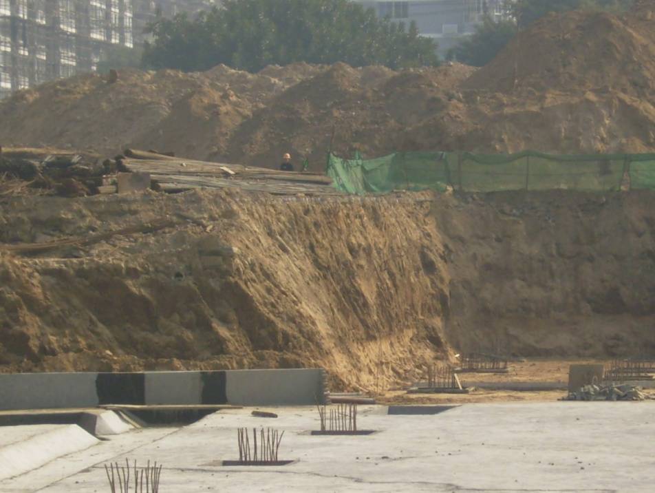 该基坑为深基坑工程_基坑周边堆放钢材等材料,易造成基坑坍塌等危险_该基坑支护采用土钉墙支护