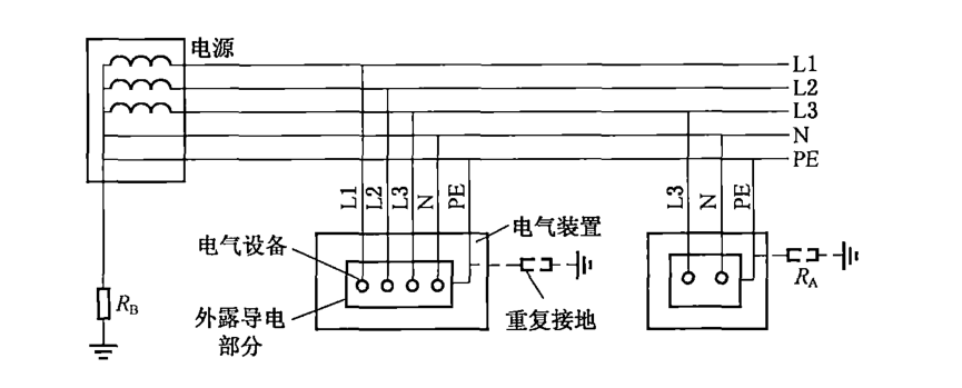 A. TN-S系统为电源中性点直接接地时,电气设备外露可导电部分通过零线接地的接零保护系统,即设备外壳连接到PE线上