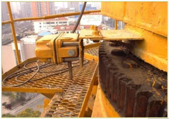 请指出该塔吊回转限制器存在的问题:( )
