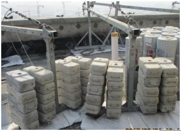 请指出高处作业吊篮配重存在的问题( )。