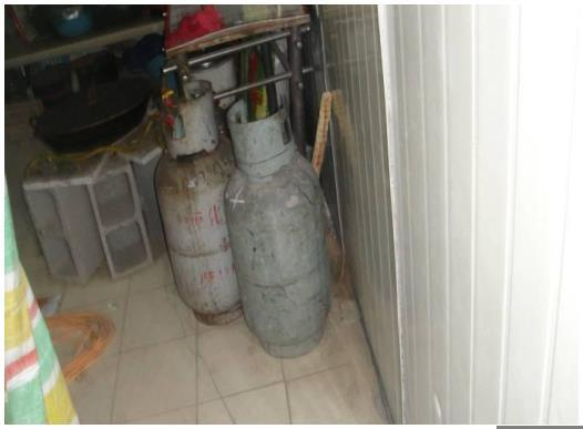 A. 液化气瓶与炉灶没有分开放置