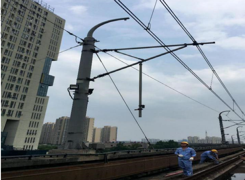 (案例题)2020年6月19日,某市轨道交通线路发生一起弓网冲突事件。该事件因接触网定位管斜支撑与定位管连接处松脱、定位管下垂侵限所致,第三方机构检测认为接触网铝合金支撑管连接件产品结构设计存在缺陷,受线路长期低频振动影响,连接件内部螺纹产生微动磨损,最终导致其松脱(如下图所示)。经查,该线路在开通前未对涉事物件进行相关检测,线路开通后也未对其进行定期检查、检测评估,在设计缺陷情况下长期缺失养护维修工作。