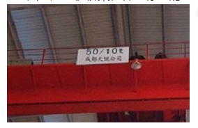 图示起重机桥架栏杆上标注的“50/10t”标识牌表示起重机的()
