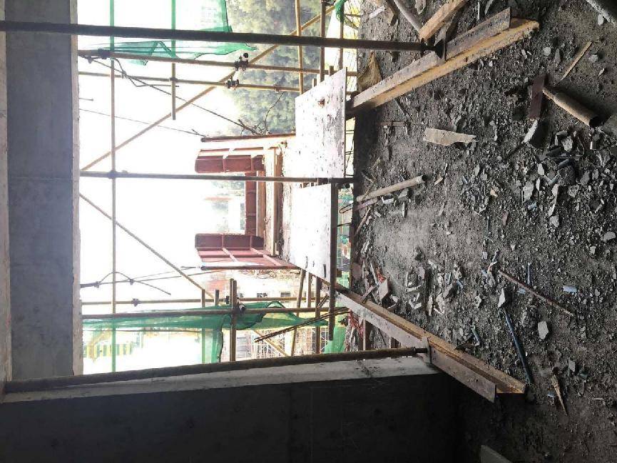 如图所示,卸料平台存在安全隐患,正确的处置方法是?()